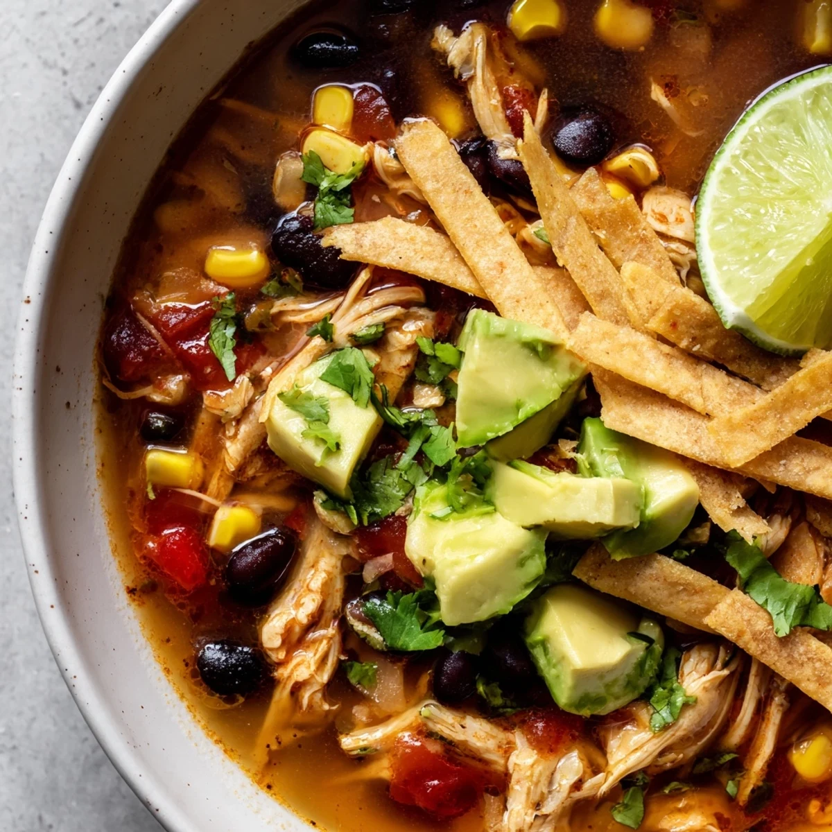 La vraie magie de cette soupe survient au moment où vous placez tous les éléments dans votre bol: la soupe chaude et épicée, les lanières de tortilla qui commencent à se ramollir légèrement dans la vapeur, les dés d'avocat qui flottent comme de petits nuages verts, et la cilantro frais qui ajoute une touche herbacée finale. Je vous suggère de toujours, et je dis toujours, presser le citron vert fraîchement sur le dessus juste avant de manger, car c'est ce qui fait vraiment briller tous les autres saveurs ensemble.