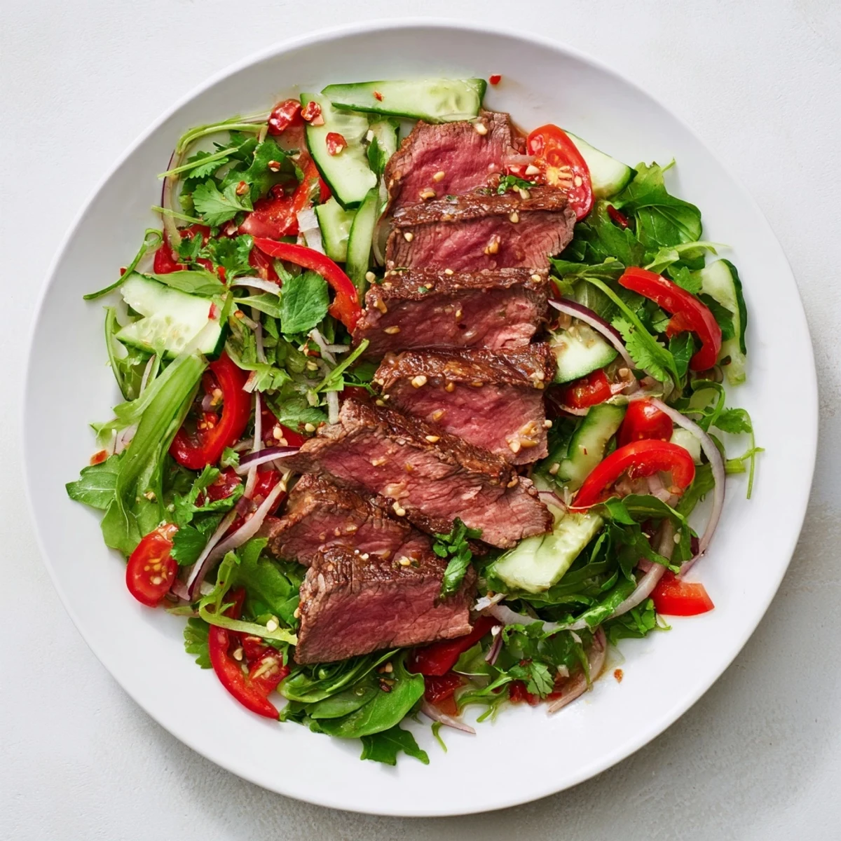 Je me souviens avoir préparé cette salade pour des amis qui passaient à l'improviste un dimanche. Ils s'attendaient à une assiette froide sans âme, mais quand ils ont goûté le bœuf encore tiède mêlé aux herbes et à la sauce piquante, l'un d'eux a dit que ça ressemblait à un plat de bistrot moderne. Ça m'a fait sourire, parce que tout venait de mon frigo et d'une poêle bien chaude.